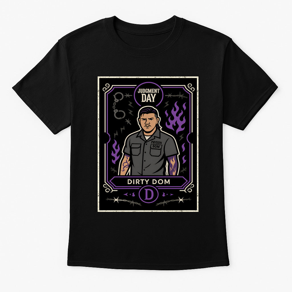 Represent the most notorious member of Judgment Day with the Dirty Dom Unisex T-Shirt. Featuring a bold retro design of the “Prison Dom” persona, this tee captures the rebellious and edgy spirit that defines his new era. Made from premium 100% cotton, it’s perfect for wrestling events, fan meetups, or everyday streetwear with attitude.