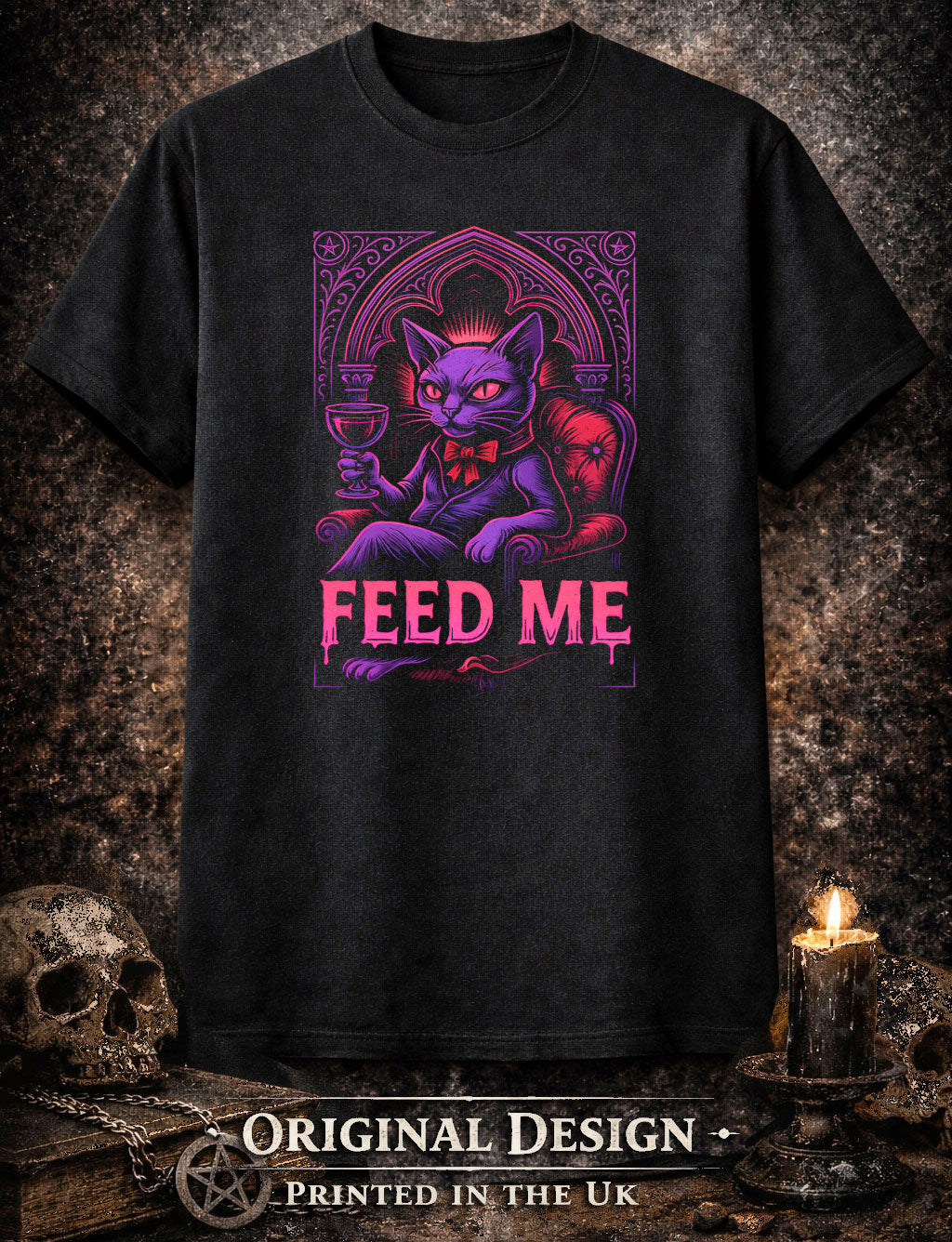 Feed Me Vampire Cat Gothic T Shirt Dark Humor Horror Cute Unisex Tee