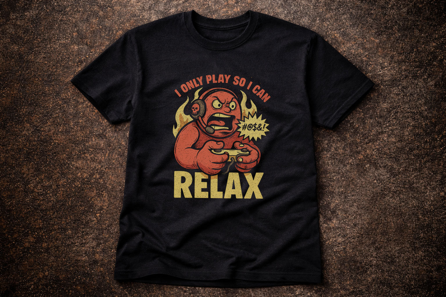This “I Only Play So I Can Relax” gamer T-shirt captures the true spirit of gaming frustration with bold retro artwork and dark humour. Featuring an intense cartoon gamer gripping a controller mid-rage, this design speaks to anyone who knows that gaming is supposed to be relaxing… most of the time.