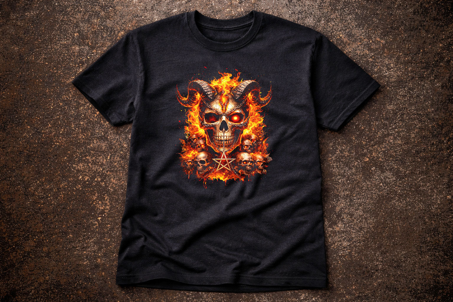 Infernal Demon Skull Skeleton Unisex Graphic T-Shirt Fire Pentagram Dark Art Tee