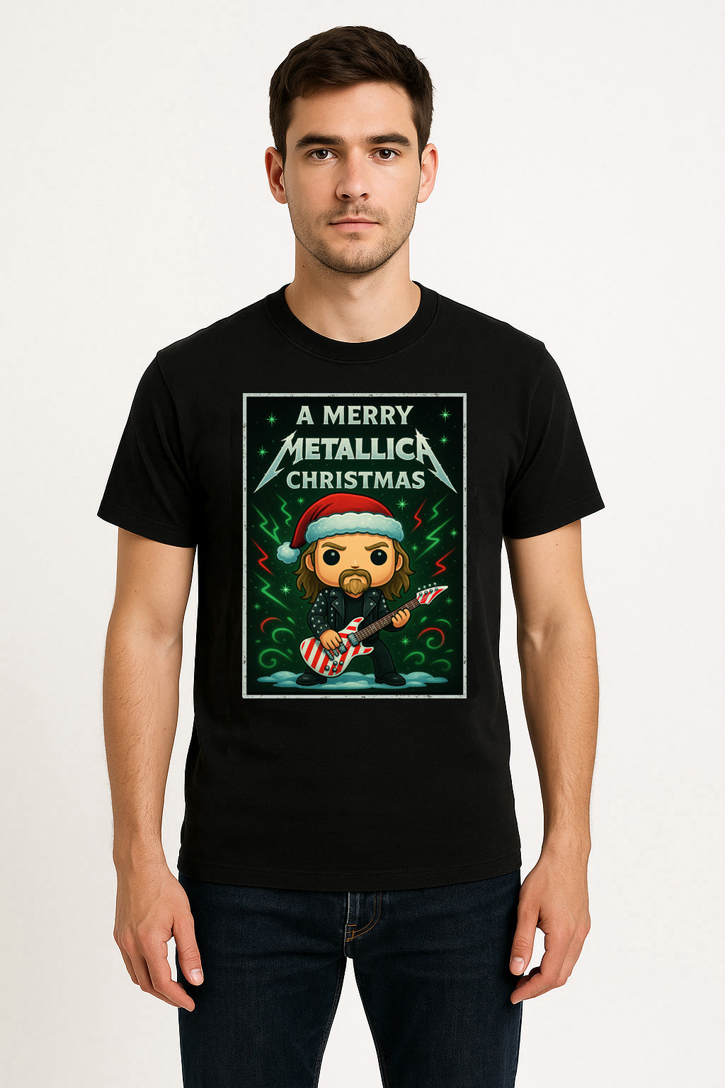 Crank up the volume this holiday season with the Metallica Merry Christmas Unisex T-Shirt! Featuring a festive cartoon guitarist in true Metallica style, this shirt captures the perfect mix of metal energy and Christmas cheer. Made from 100% soft cotton, it’s designed for lasting comfort whether you’re headbanging at a holiday concert or relaxing by the fire. The ultimate gift for metalheads who live for riffs and reindeer alike.